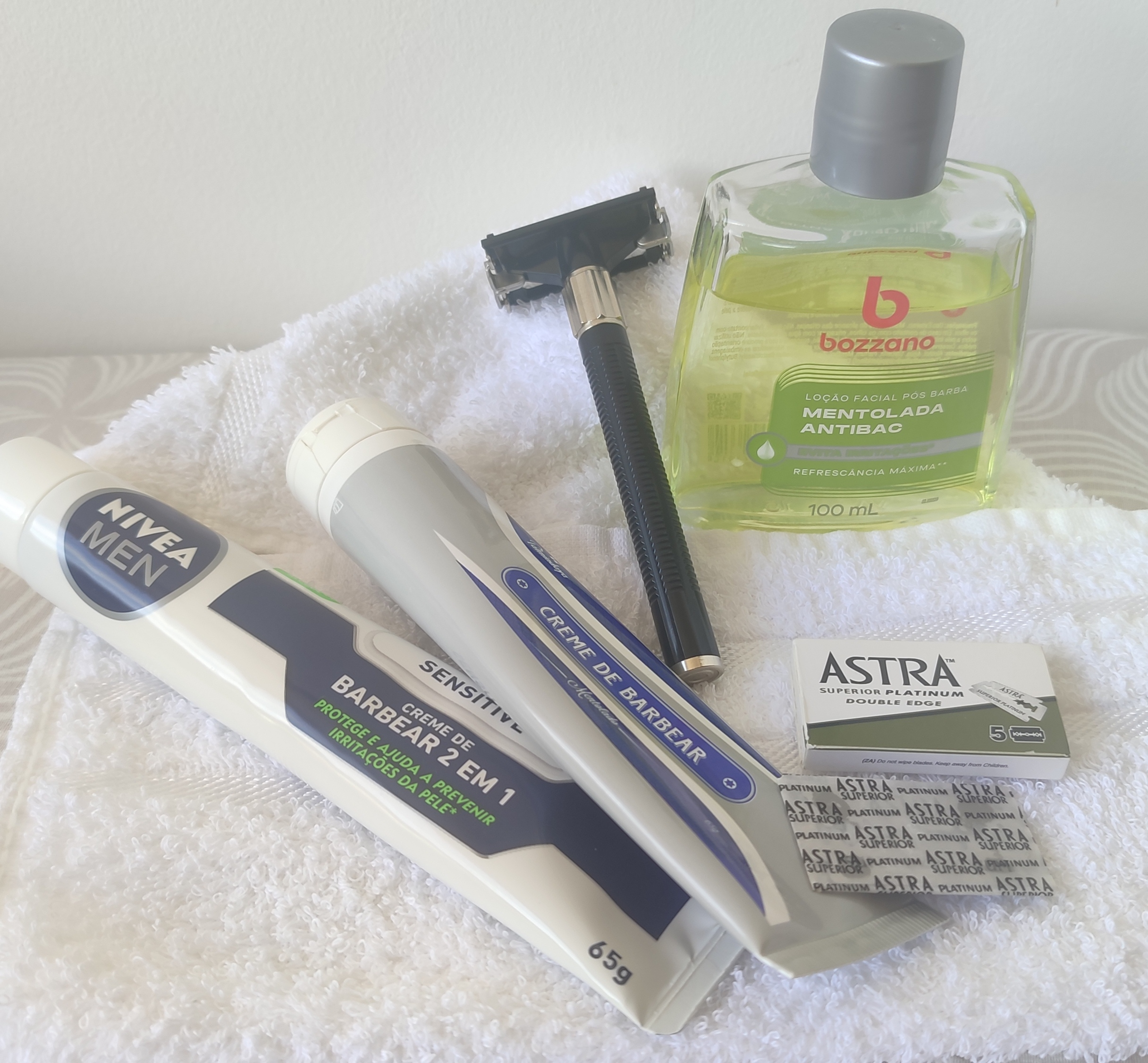 Barbeador: Gillette Tech Fat Handle, restaurado por Ruas Men's Grooming Sabão: Tony’s Grooming Pincel: Yaqi Rocks 28mm Loção: Amphora by Jelly Roll Grease Lâmina: Astra Superior Platinum