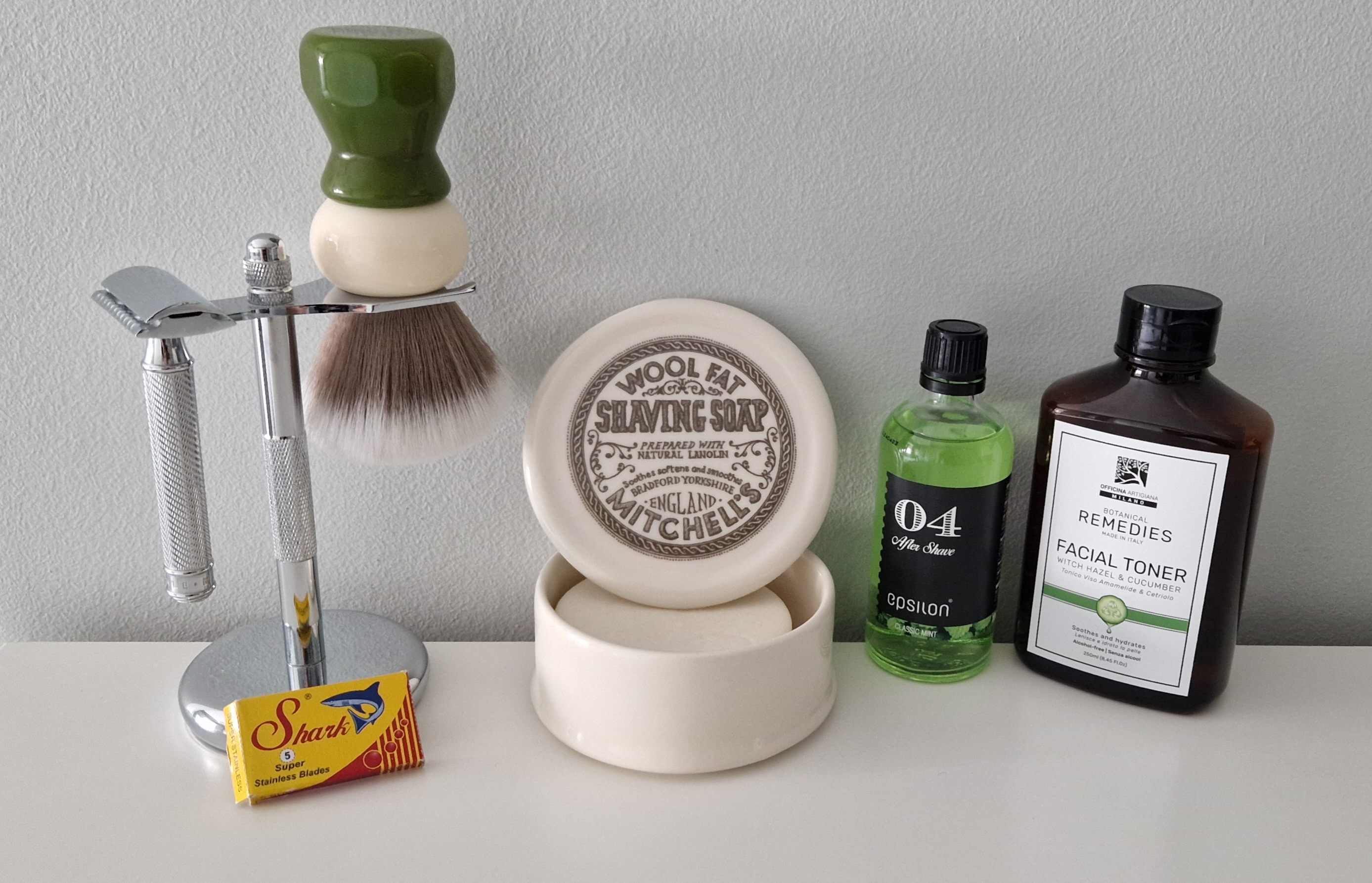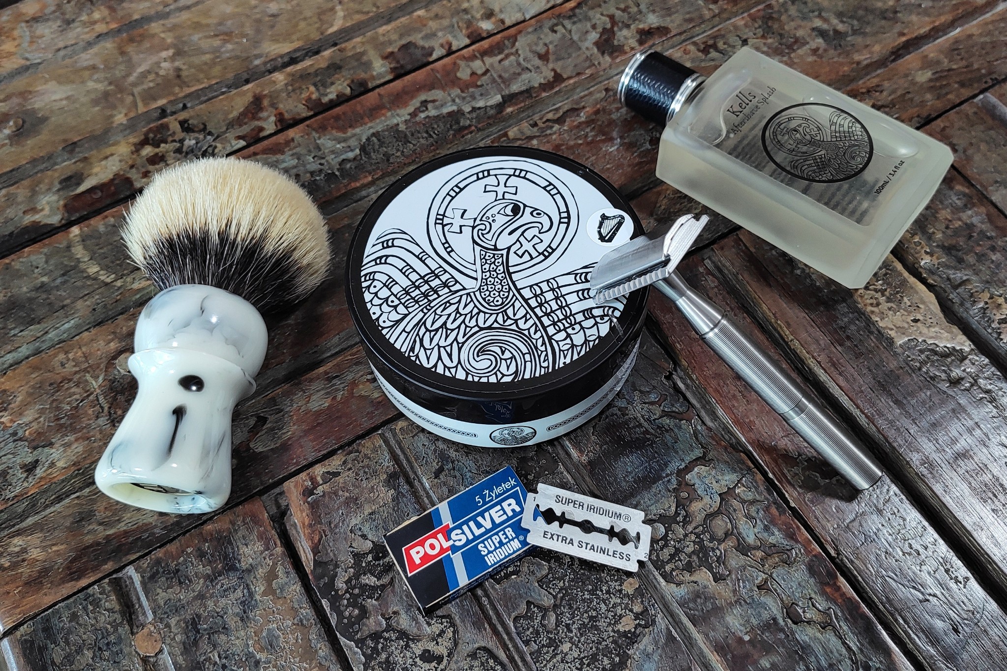 + Máquina: Greencult GC1.0 + Lâmina: Polsilver (2) + Pincel: Turn-N-Shave + Boti (Captain) badger 28mm + Sabão: Murphy and McNeil Kells (base: Slainte) + Pós-barba: Murphy and McNeil splash
