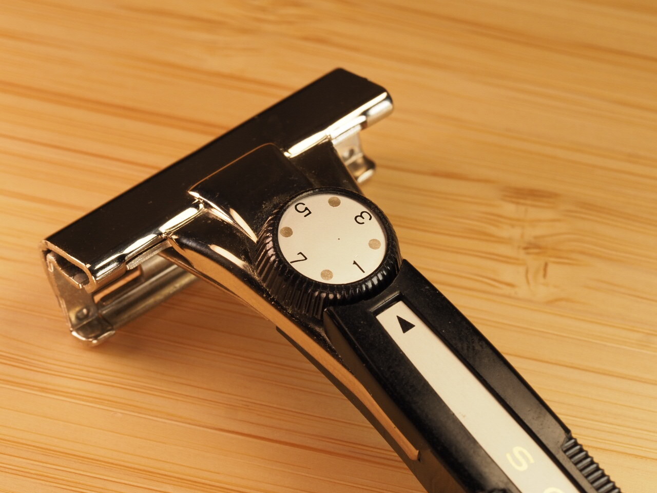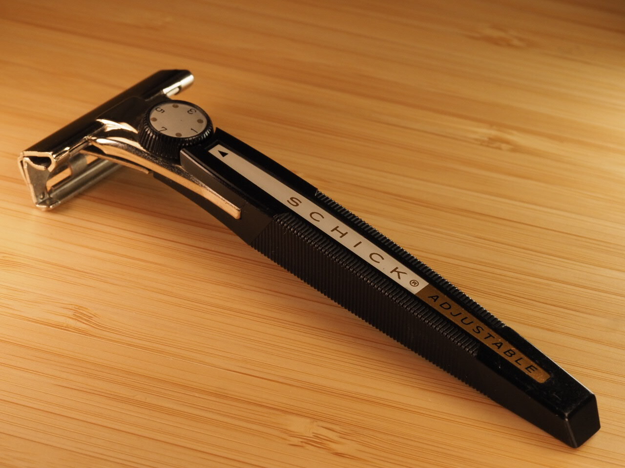 A Schick Adjustable é um dos modelos mais interessantes da marca, combinando a simplicidade das injectors com um sistema de ajuste de agressividade. Produzida nos anos 60, ela permite ao usuário escolher entre um barbear extremamente suave ou um mais eficiente, dependendo da necessidade.