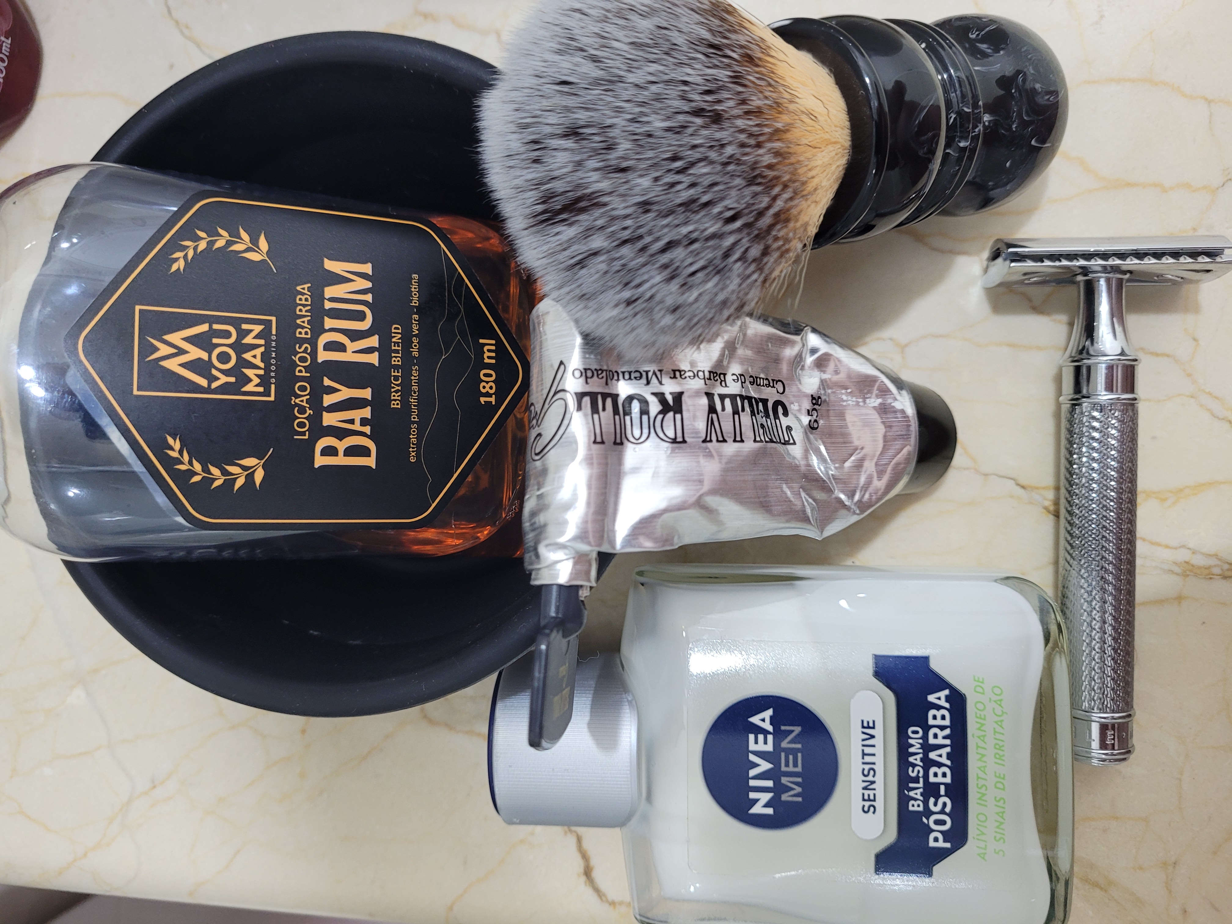 Pós barba: loção youman bay rum e bálsamo Nivea sensitive