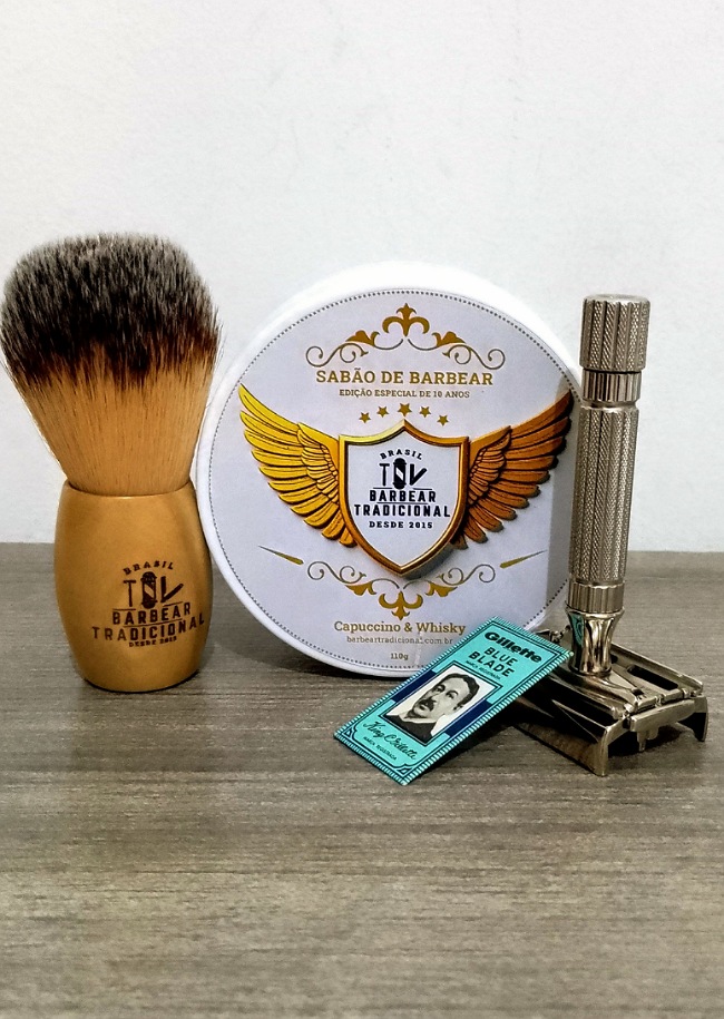 28. Pincel: Forum Barbear Tradicional 2023 Sabão: Fórum Barbear Tradicional especial 10 anos Barbeador: Gillette Aristocrat restaurado por Ruas Men's Grooming. Lâmina: Gillete Blue Blade Pós-Barba: Eucalyptus Mint Ruas Men's Grooming.