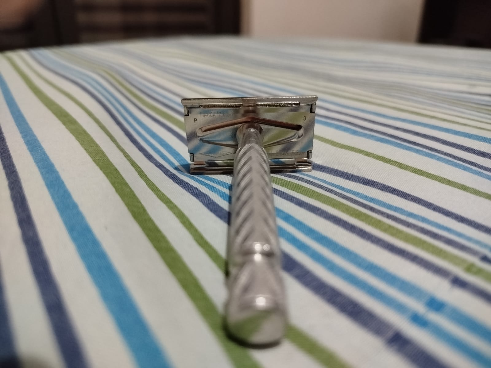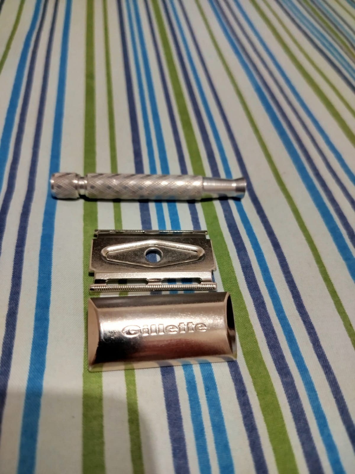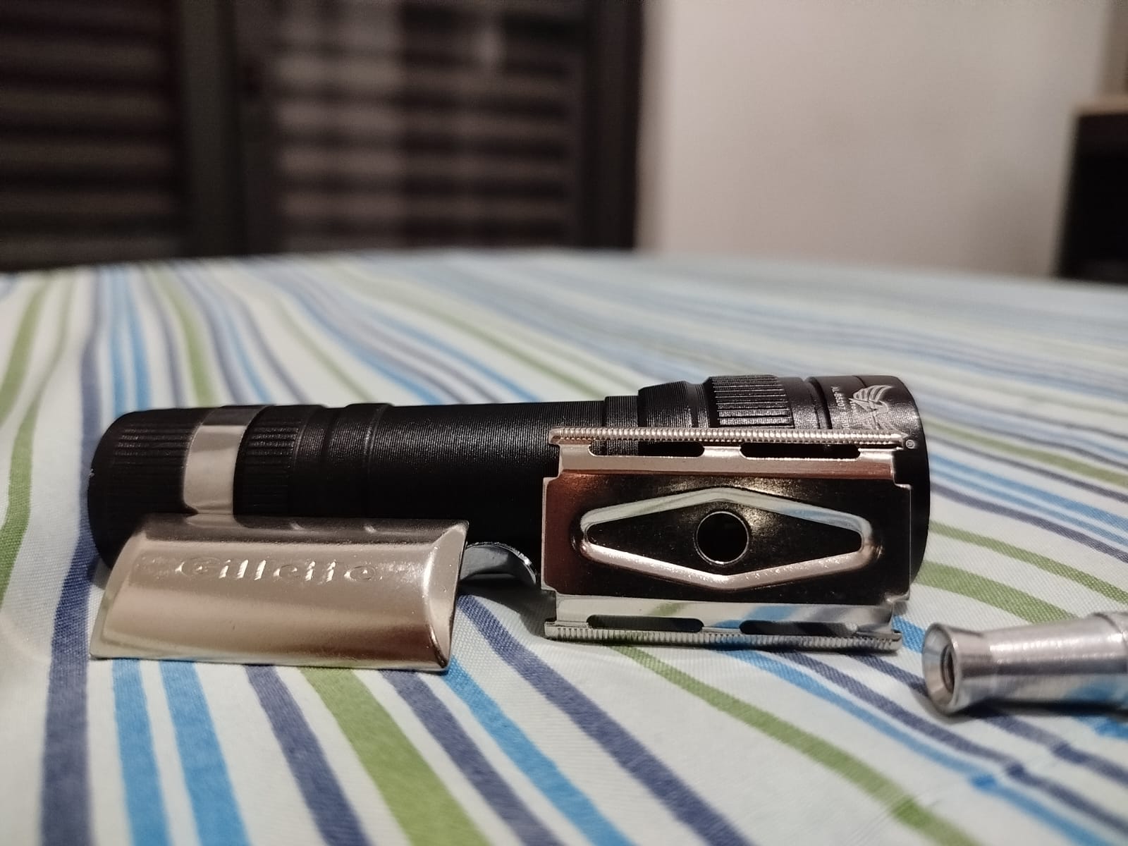 Estou colocando à venda um Gillette Tech Aluminum Handle, conforme as fotos abaixo. Tenho alguns exemplares na minha coleção e estou aproveitando para reduzir um pouco o acervo.