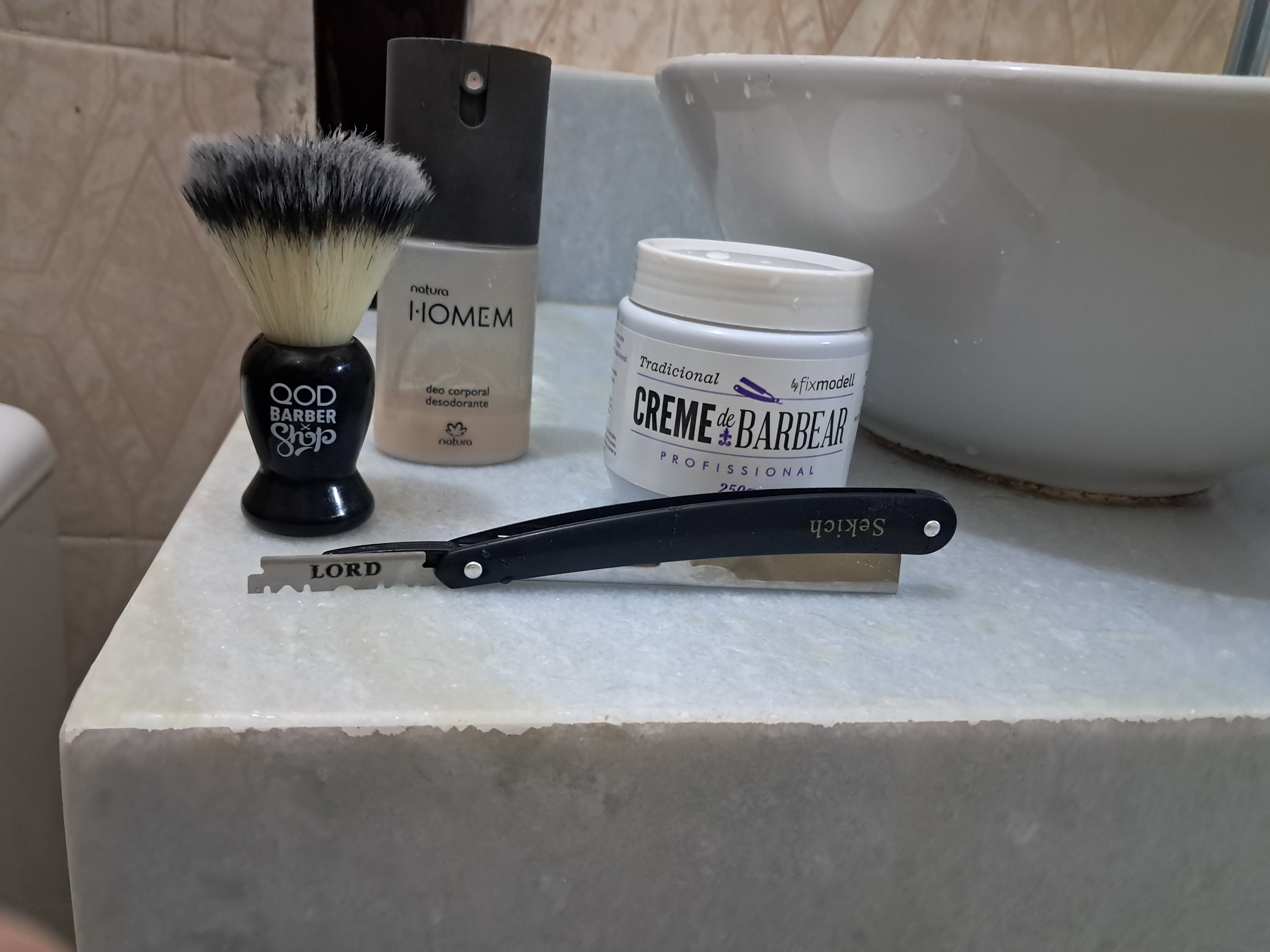 Meu primeiro barbear tradicional. Achei impressionante como é infinitamente melhor que o barbear com aqueles descartáveis de três lâminas. Ficou praticamente BBS. E não tive nenhum corte.